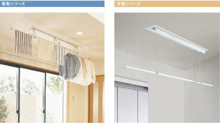 電動で物干しユニットが天井から降りてくる商品もありますよ