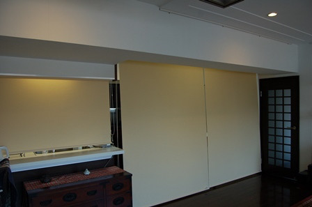 キッチンとダイニングスペースをスクリーンで仕切ることで、