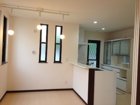 キッチン上のダウンは昼白色、ダイニングの照明は電球色!
