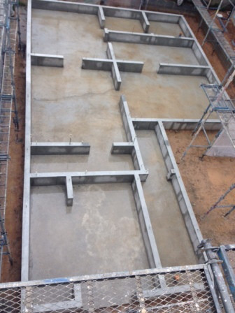 基礎工事も無事完了して、足場が組まれていますおうち