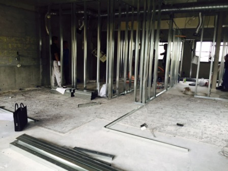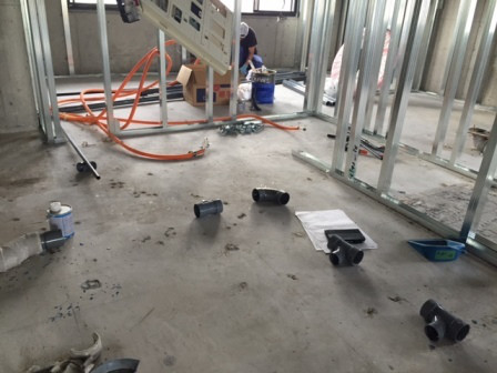 そして、その隅では、設備屋さんが配管の工事をされていました。