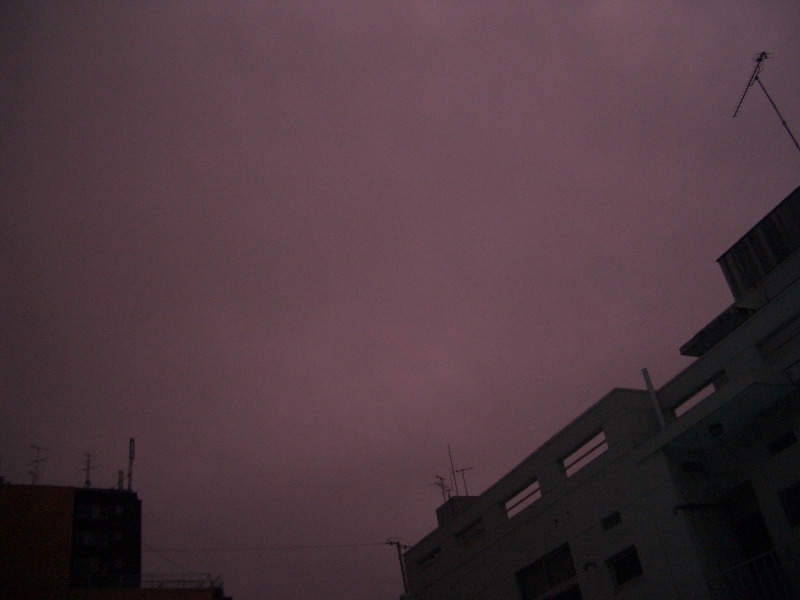 夜になる直前に、会社の中がなんだか淡いピンク色に。