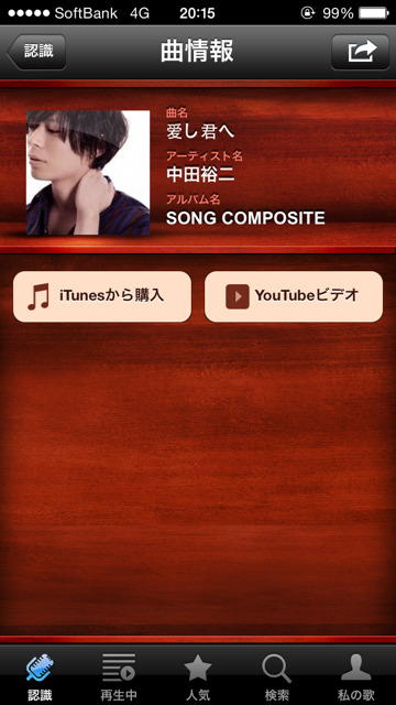 なんとびっくり、曲名と歌手名が表示されます照れる