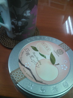 ひと息ついて、私はただいま“白桃ダージリンティー”の香りと味に癒され中です