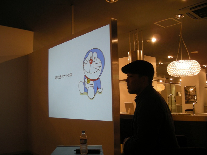 プロジェクターを使って、今まで先生が設計された物件を見ながら