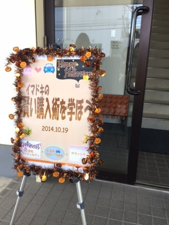 会場入口には、カローラ博多さん手作りのサインプレート。